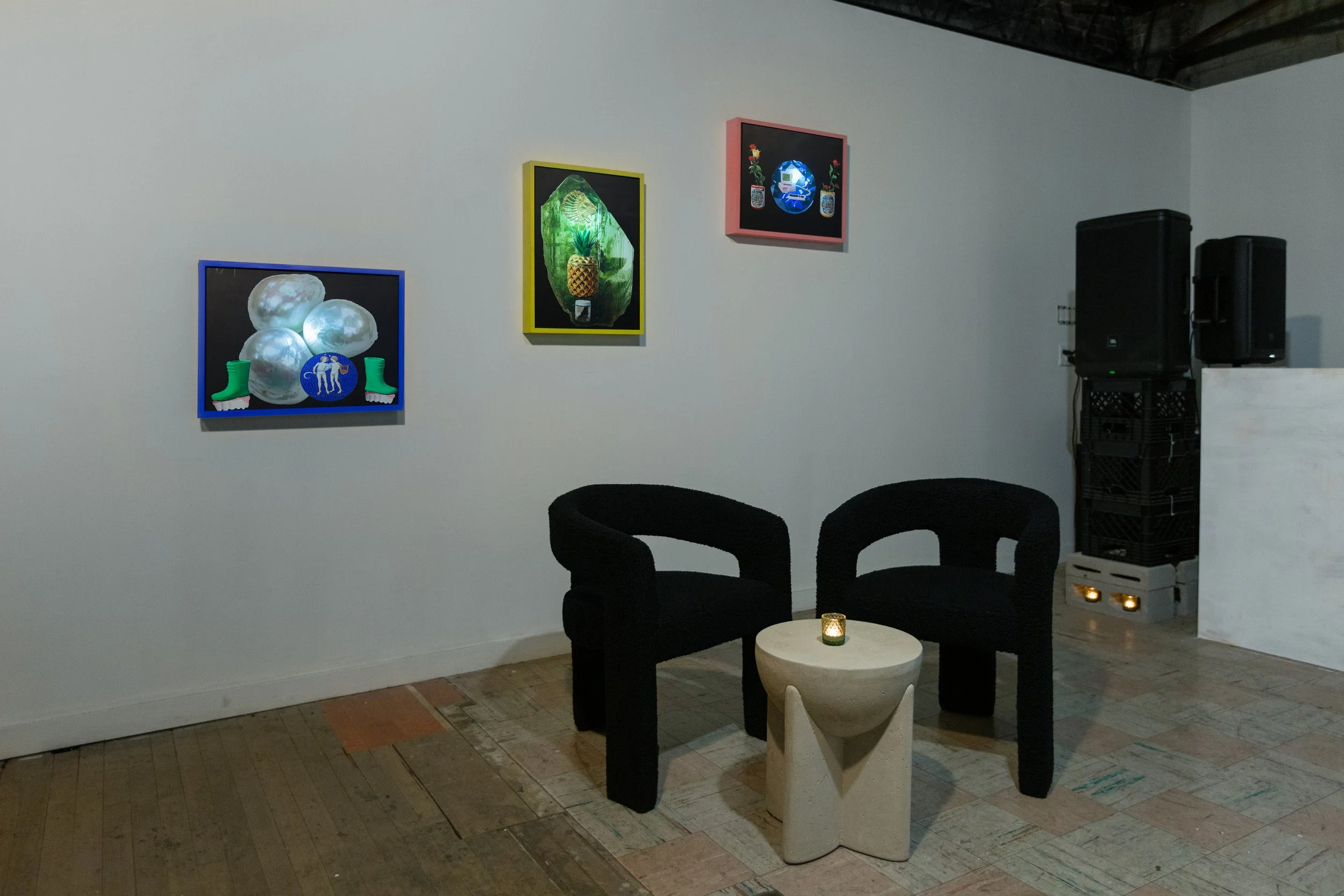 Installation view of NANNA at Beverly’s NYC, September 2025 through January 2026; work by Stina Puotinen, Mollie McKinley and Alex Schmidt